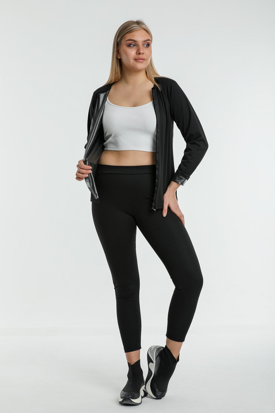 Spor yaparken, yürüyüşte ya da ev işleri sırasında vücut ısınızı artırarak terlemeyi destekleyen bu takım; hem üst hem alt parçasıyla tüm vücudunuza etki eder.